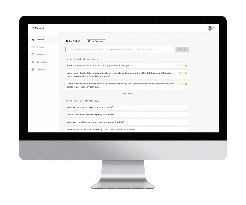 Within Maxwell Business Intelligence, the AskMax feature leverages breakthroughs in artificial intelligence to make analytics even more accessible to lending teams.